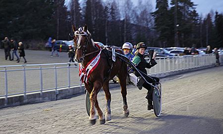 Til slutt var det også Kristine Støen Kivles hest som fikk seieren, men det var etter en heroisk innsats i tredje spor det meste av løpet. Bak han var det to hopper som besatte trippelplassene: Tante Ragnhild og Finnskog Oda.
