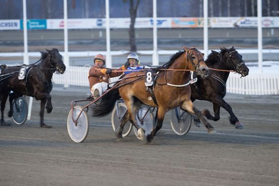 I siste sving så lederparet ut til å slite og angrepene kom bakfra. Nestfavoritten Ramstad Balder hadde fått et fint løp og kom i fin fart, men Våler Eld viste en imponerende vilje og strakk på seg til 1/2 lengdes seier.